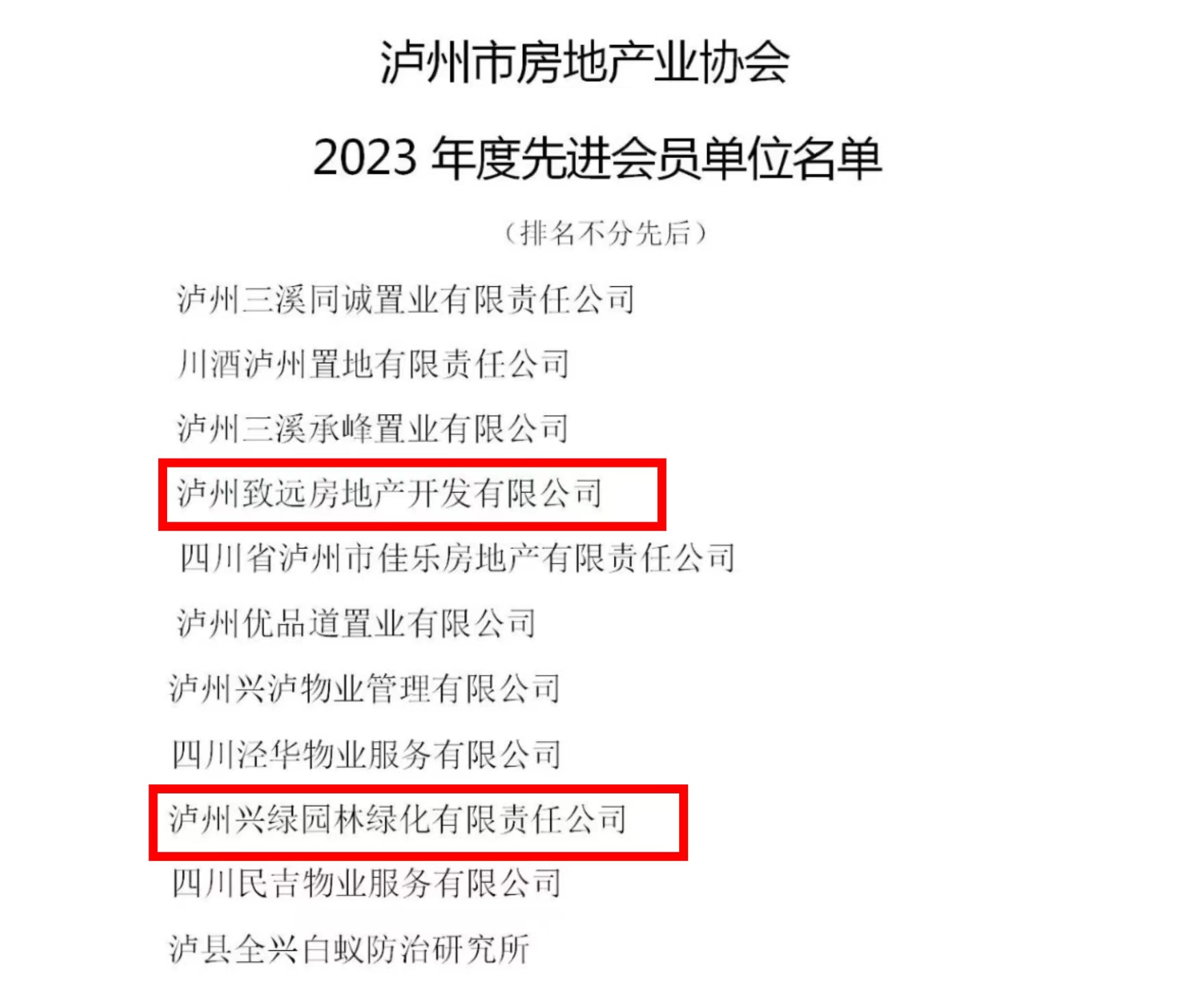 喜報!瀘州城投集團(tuán)下屬興綠園林公司、致遠(yuǎn)房地產(chǎn)公司榮獲瀘州市房地產(chǎn)業(yè)協(xié)會“2023年度先進(jìn)會員單位”稱號