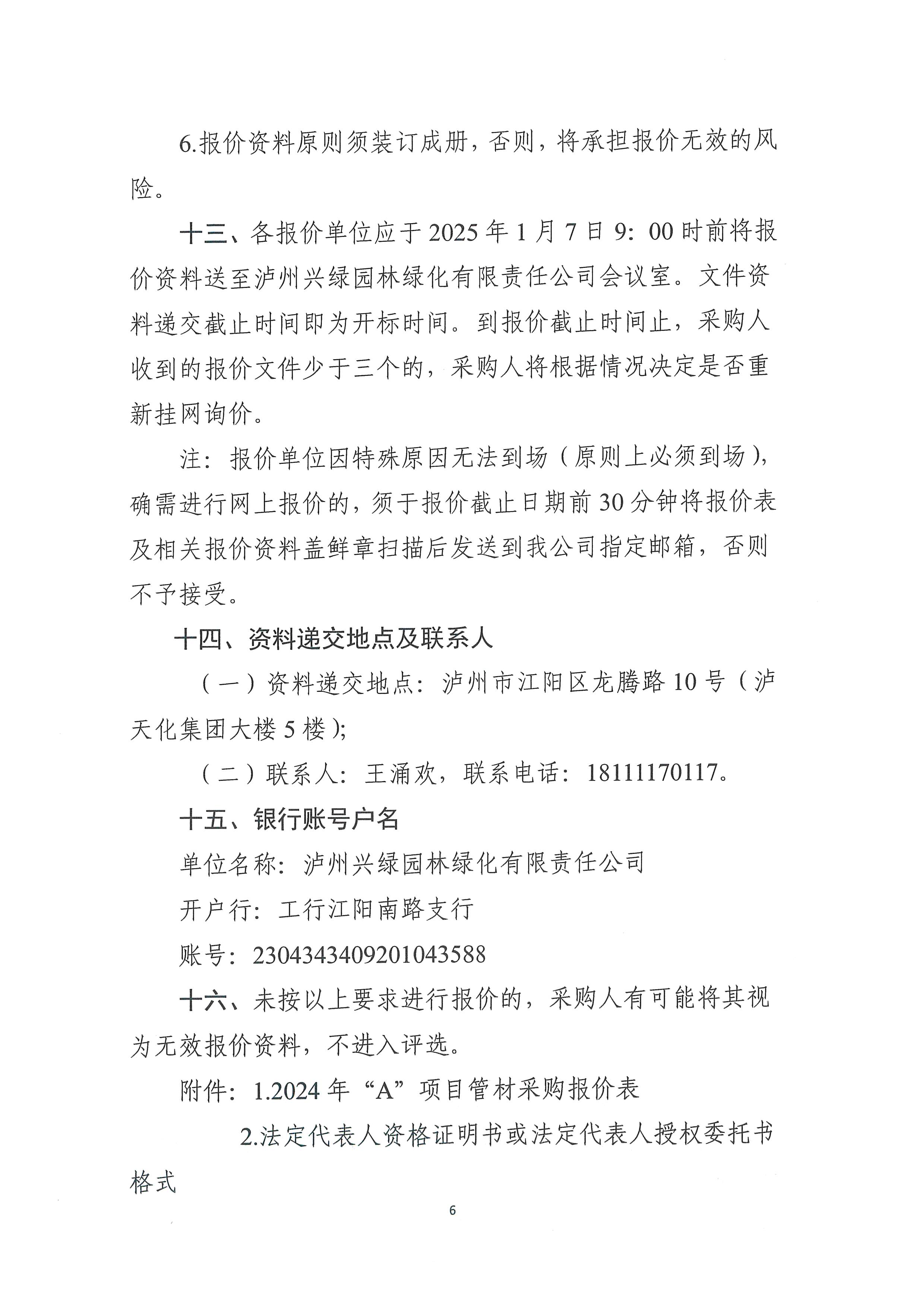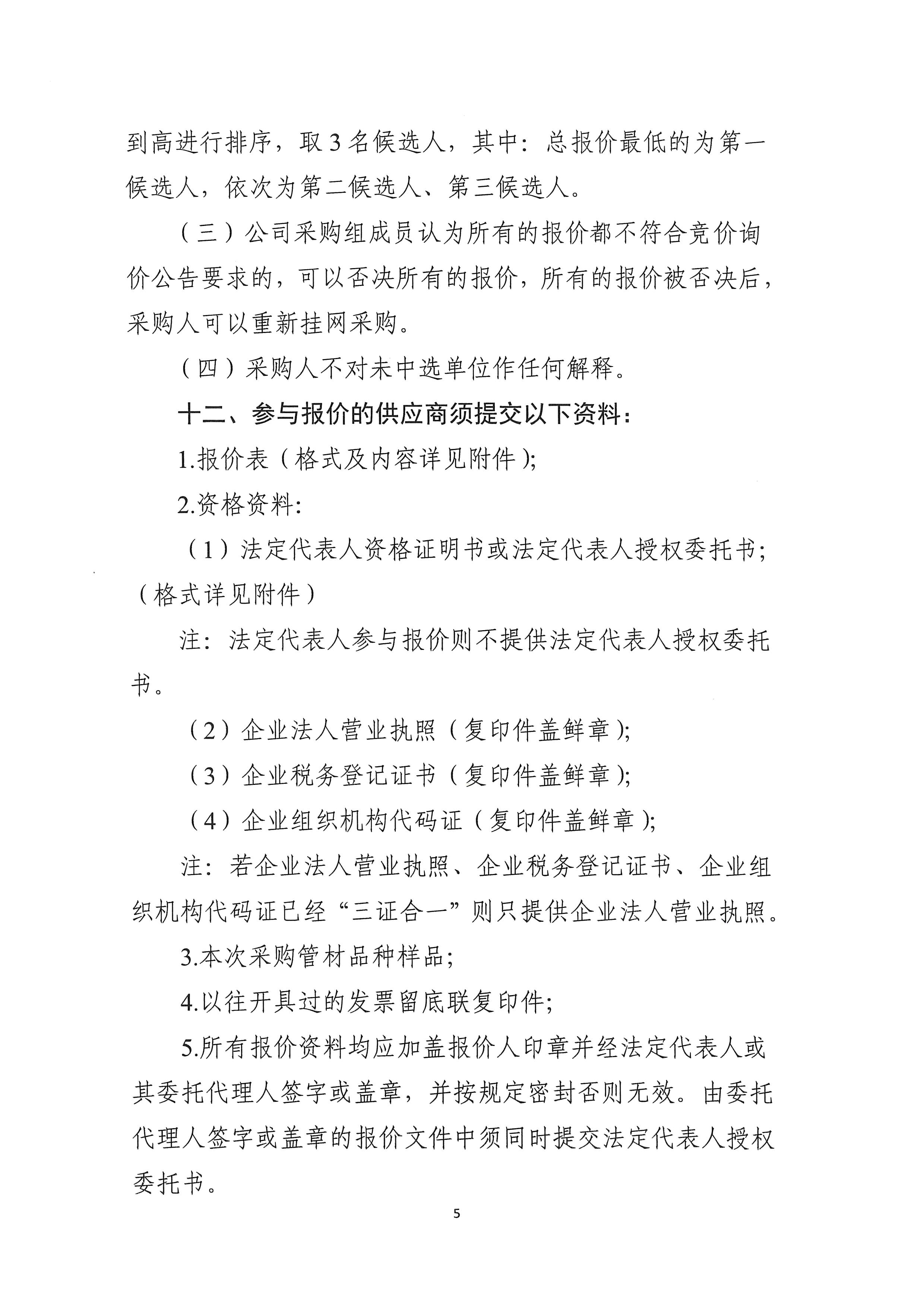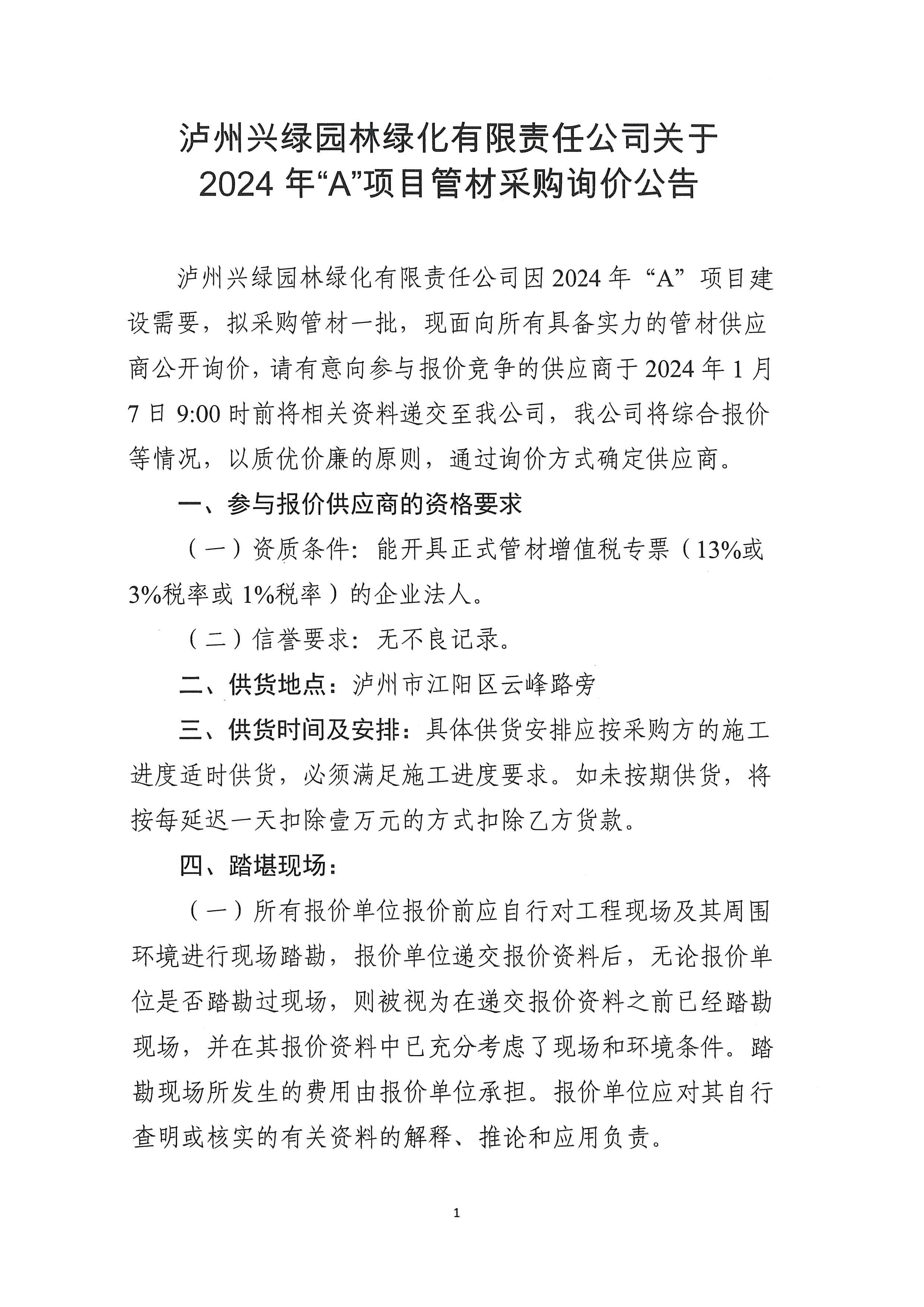 2024年“A”項目管材采購詢價公告